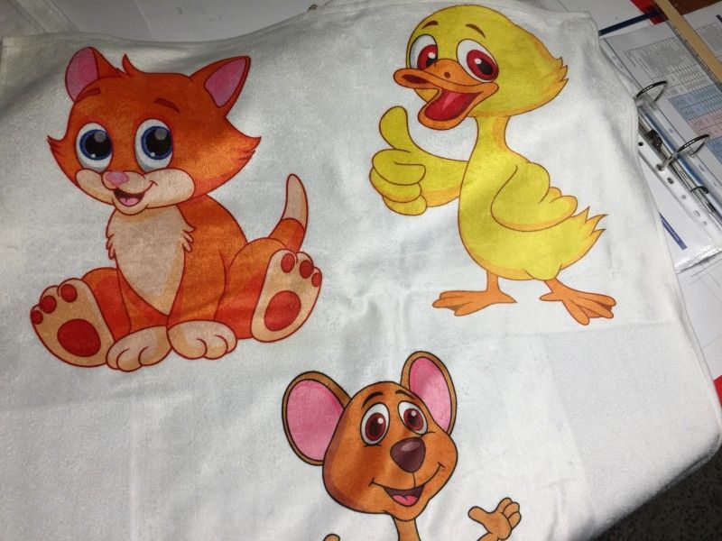 - von Textilien mit Grafiken Schriftzügen o. ä.